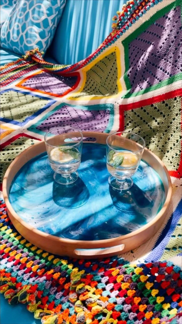 It is possible to create colorful and elegant sets with Naz Design products. For example; you can create a magnificent set with a wooden board, cheese knife set, tray, and coasters.